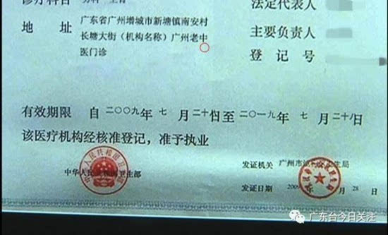 “根据那张所谓的“执业许可证”,我们找到来新塘镇南安村长塘大街这里。但走遍整条街也看不到有什么老中医门诊。据了解,这里唯一的一间正规诊所也早在一年多之前就搬走了。”?