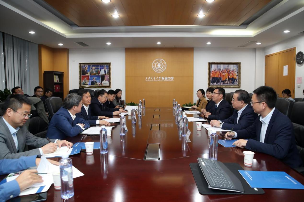 訾艳阳对中国农业大学一行表示热烈的欢迎,并指出西安交大附中一直以来坚持素质教育,非常重视学生的全面发展和终身成长,非常感谢中国农业大学来校宣传和签约授牌,也愿意为中国农业大学输送更多优质生源,希望大学和中学在拔尖创新人才培养方面展开更多的合作。