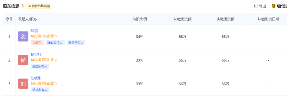 值得注意的是,小杨和工作人员口中提到的“淡琪”是西安曼研医疗美容有限公司的大股东、疑似实控人,持股比例达34%。