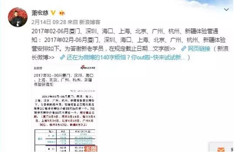 但是在新浪微博上,可以看到萧宏慈仍然辗转在国内各个城市间开办治疗班,今年2月至6月,他将在我国7个城市和地区开办体验营。