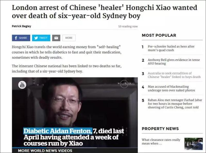 在世界各地推广“拍打拉筋自愈法”、人称“大师”的中国“神医”萧宏慈在澳大利亚又卷入一宗命案,致一名患糖尿病的6岁男童死亡。